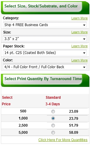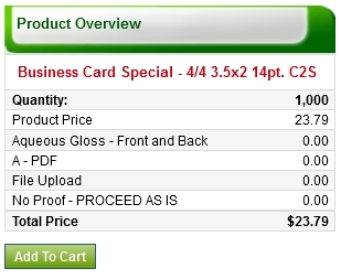 business cards printed on 14 pt. or 16 pt. Coated Card Stocks at our lowest